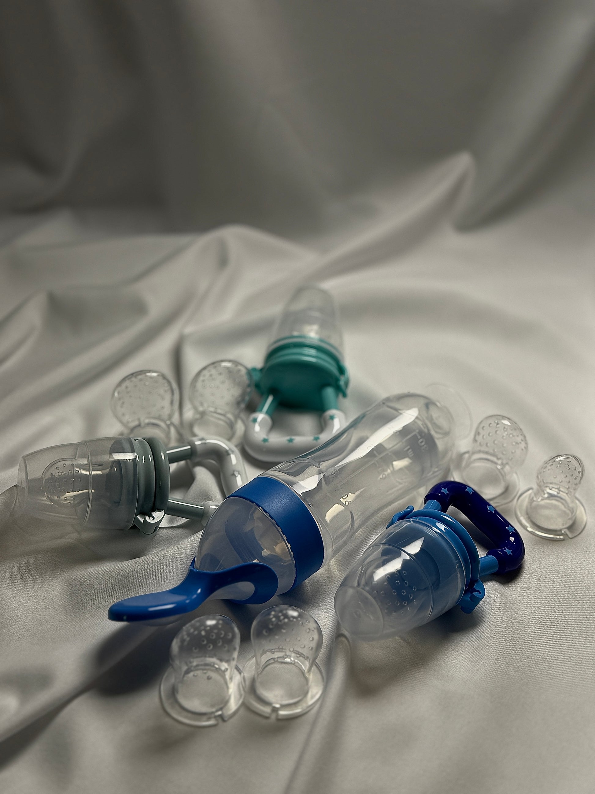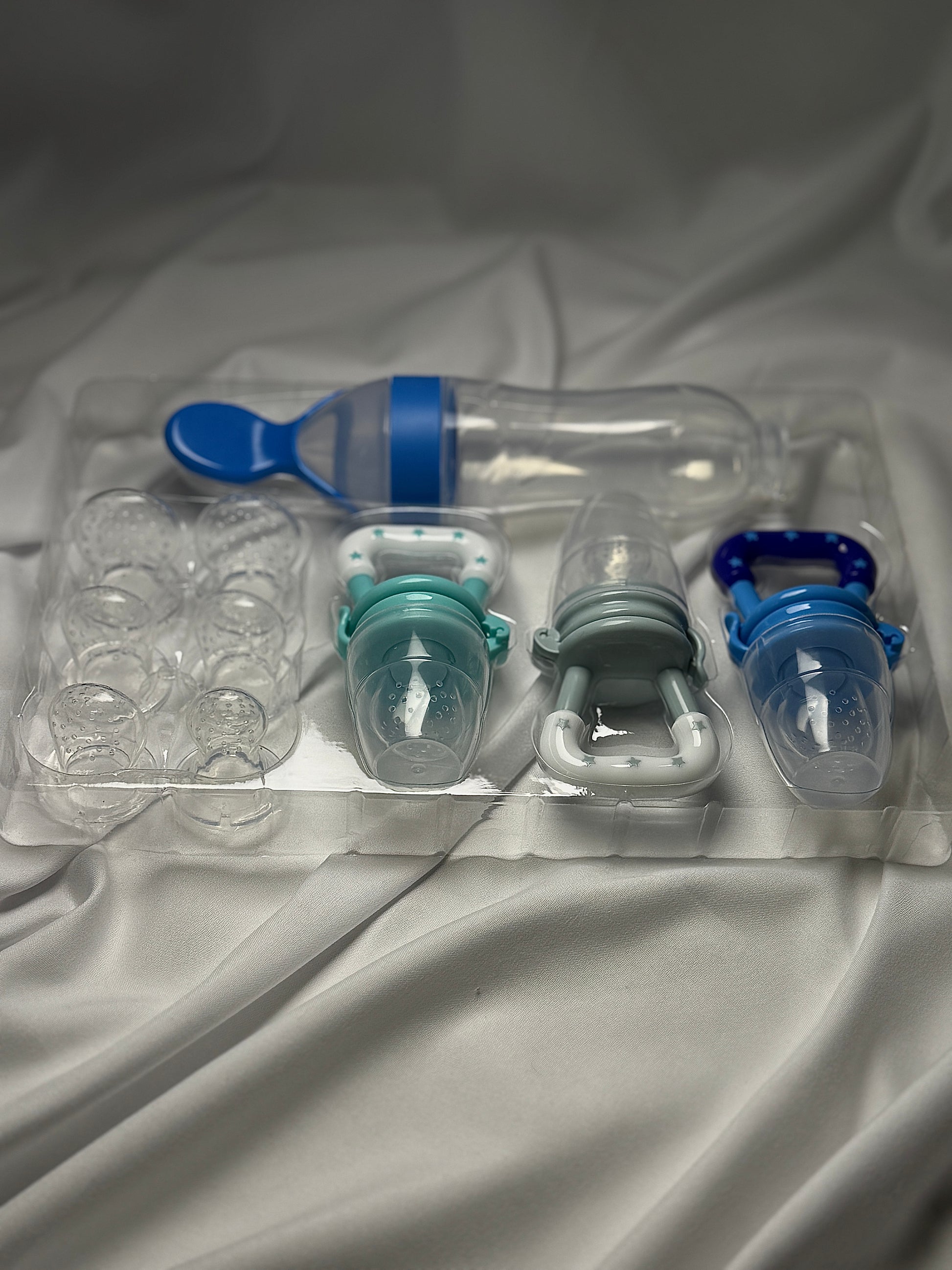 Бебешки сет: 3 биберона за плодове + 6 поставки + лъжичка-дозатор